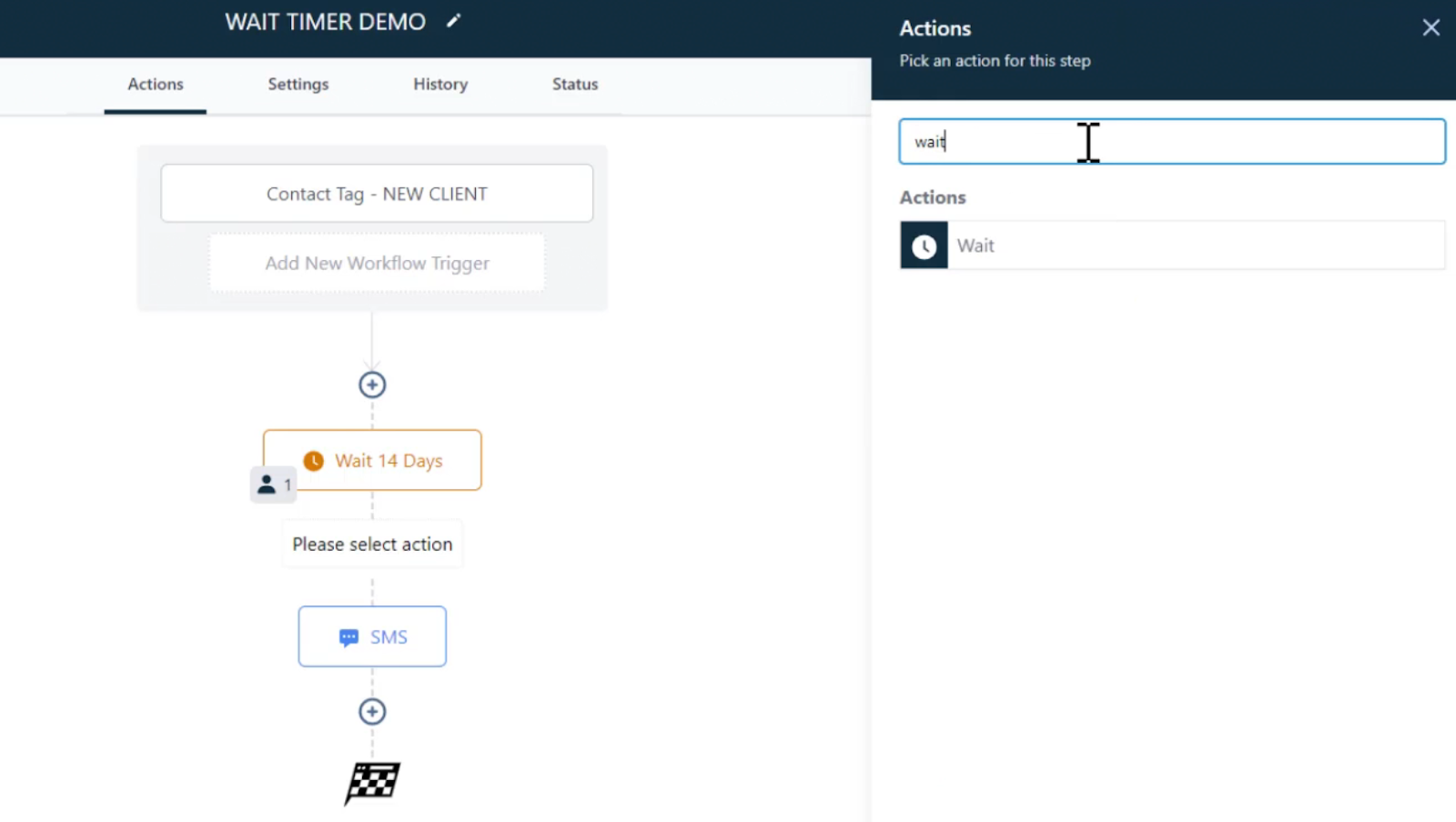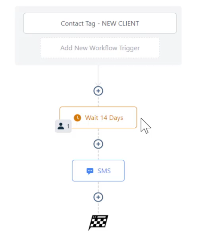 This video will explain how to change a wait step within a workflow. Certain workflows will have wait times before the next step is triggered. For example, you may have an automatic confirmation SMS go to a lead that they have booked an appointment and you may then want a reminder SMS to be sent to them 24 hours later. You would then have a wait step between those two SMS messages that will wait 24 hours before sending the second SMS.