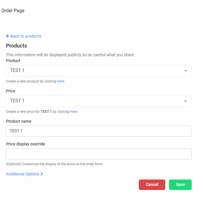 Select the product that you created in your account earlier under ‘Product’ as well as ‘Price’ and ‘Product name’ and click save