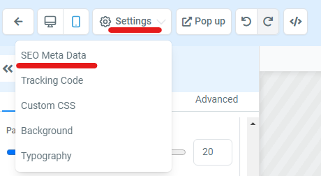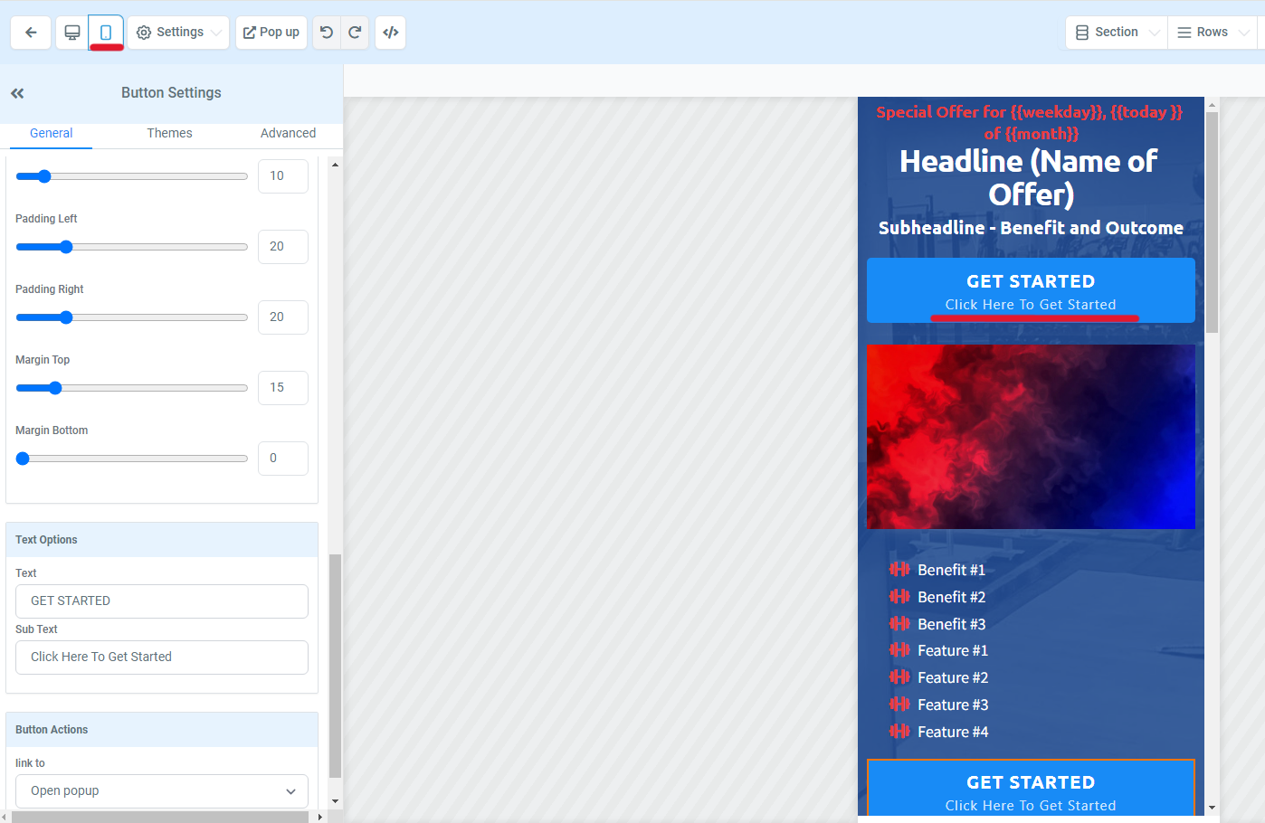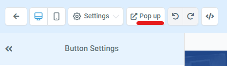 Ensure your button settings are set to ‘Open Popup’ and click on the ‘Pop up’ button at the top to edit these settings