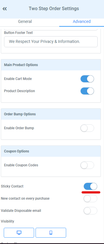 Scrolling down, a feature we really recommend here is to turn on ‘Sticky Contact’. This will automatically fill out their details here based on the information they entered on the opt in form on the previous page. This avoids them having to fill out their details twice