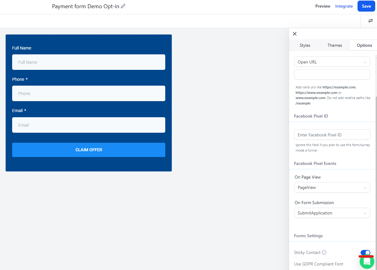 You will also need to create a new opt in form for this funnel. You should already have a basic opt-in form in your account that you can simply duplicate, or you can create a new one from scratch. You only need three fields in this form: Full Name, Phone and Email. However you want to ensure within this form that you have turned on stick contact to ensure once they have entered in their information on this form, ZipLeads will remember that information on their checkout page and prefill those details.