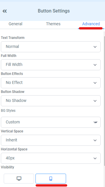 You can customise this button to match your other buttons on this page and ensure it is only shown on mobile view by clicking into the ‘advanced’ tab under the button’s settings