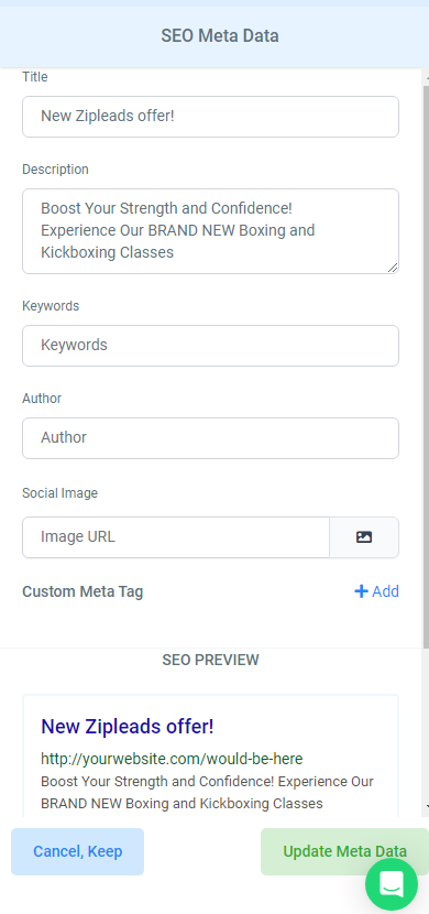 Click into Settings > SEO Meta Data and ensure you have all of this information set up including your title, description and Social Image