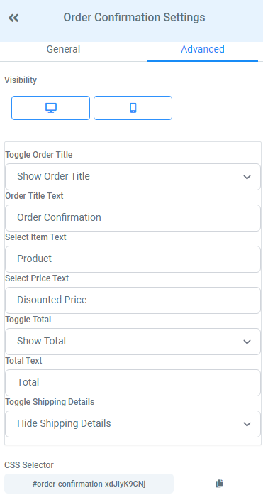Navigate to the ‘Advanced’ tab on the left hand side menu. Here is where you can edit the title text, item text, price text, total text and choose whether to show or hide shipping details